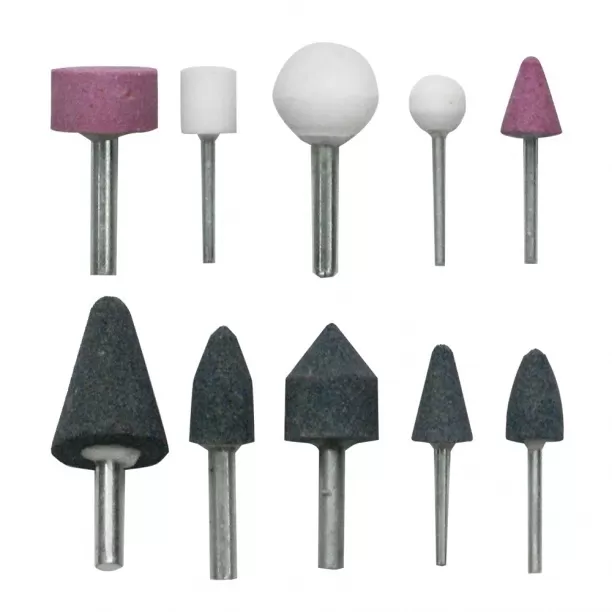 Набор шарошек абразивных 10 шт. различной формы с цилиндрическими хвостовиками 3-6 мм применяются на электрическом гравёре для шлифовки изделий из дерева, металла, пластика. Неоспоримым преимуществом шлифовально-полировальных материалов являются их высокая производительность, увеличенный рабочий ресурс и универсальность применения.
